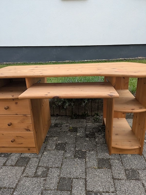 Ich verkaufe einen stabilen Kinderschreibtisch aus Kiefer Vollholz (gelaugt und geölt). Der Schreibtisch ist gut erhalten und weist leichte Gebrauchsspuren auf, die sich bei Bedarf durch Abschleifen einfach entfernen lassen. Details: - Material: Kiefer Vollholz, gelaugt & geölt - Zustand: gut mit ...