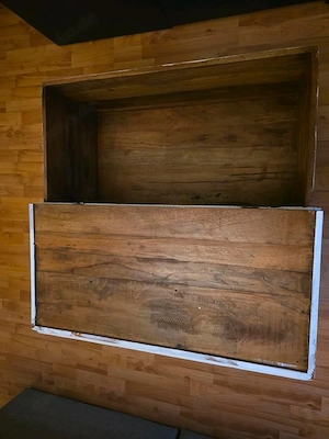 Neupreis 450 es war dunkles Holz und wurde geschliffen und mit Kreide Farbe gestrichen. Hat Nutzungsspuren am Holz und Metall . Kann wieder geschliffen oder Spuren mit Kalkfarbe weiß überstrichen werden. 90x92x47 3 Schubladen 35x18x8 2 Schubladen 35x31x8 1 Stauraum 83x40x30