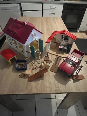 verkaufe von schleich einen pferdestall sowie eine Tierarztpraxis mit zubehör wie oben abgebildet,