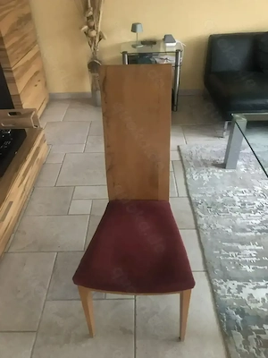 6 sehr gut erhaltene Esszimmerstühle. Wildbuche massiv, gewachst. Neupreis 1800,- Euro. Maße: Lehne h 105 cm, Lehne b 28 cm, Sitzhöhe 47 cm,