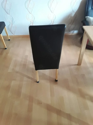 Tisch Buche mit fester Platte 74 cm x 120 cm x 80 cm. 4 Stühle Schwarz Kunstleder Stuhlbein Buchefarbig.