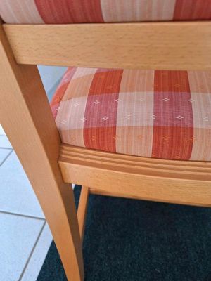Esszimmerstühle massiv Buchenholz mit strapazierfähigem Stoffbezug. Moderner Landhausstil. Sehr bequem durch gepolsterte Sitz- und Rückenlehne. Polsterung, Holz und Stoffbezug sind sehr gut. Nur geringfügige Gebrauchsspuren. Max. 6 Stühle verfügbar. Preis pro Stuhl 49 Euro. Bei Abnahme aller 6 Stühle, ...