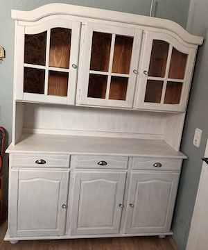 verkaufe gebrauchtes Esszimmermöbel Schrank 2-teilig L 1500 mm, H 1980 mm, T 470 mm, bei Einzelabnahme 80 Schrank 1-teilig, L 1500 mm, H 860 mm, T 470 mm, bei Einzelabnahme 50 Eckschrank L 800 mm, H 1980 mm, T 470 mm, bei Einzelabnahme 50 Esszimmertisch L 1070 mm, H 720 mm, T 1070 mm mit 2 Tischverlängerungen ...