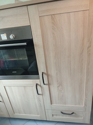 Verkaufe wegen Wohnungsauflösung eine schöne Einbauküche in heller Holzmaserung an Selbstabholer. LxBx H. 402cm x 58cm x 84,5 cm
