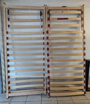 Zwei Lattenrost mit verstellbarem Kopfteil. Größe: 80 190. Wurde für einen Wohnwagen für zwei Einzelbetten angepasst.