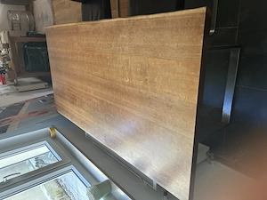 Esstisch verlängerbar, massivholz, 202x93x5 Verlängerung 52 cm mit massivem Stahlunterbau. Gebraucht, Platte sollte geschliffen werden