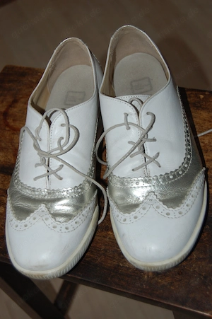 Verkaufe hochwertige Budapester Leder-Halbschuhe weiß-silber im Designer-Brogue von Fred Marx mit integrierter biodyn-Technologie. Absolut hochwertiges Sammlerstück aus der Boutique Laufsteg Ingolstadt, handwerklich perfekt verarbeitet. Der Schuh ist gebraucht, wurde aber wenig getragen. An den ...