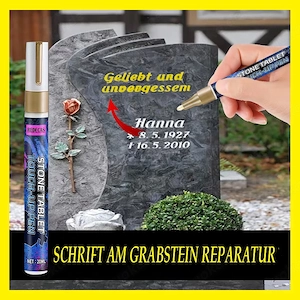 2 Stück KEIN FILZSTIFT GEFÜLLT MIT FLÜSSIG FARBE Verleihen Sie Ihrem Grab einen Hauch von Eleganz mit dieser edlen Grabschrift in Goldfarbe. Die einfache Anleitung in deutscher Sprache ermöglicht es, das Motiv "Selbst nachbessern" persönlich an Ihre Bedürfnisse anzupassen. Dieses hochwertige Produkt ...