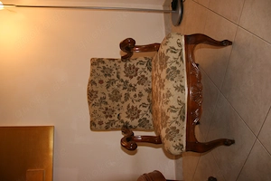 2 Chippendale Lehnsessel, Breite x Tiefe ca. 68 x 76 cm, Höhe der Lehne 90 cm, Polsterung intakt, Bezug zum Teil ausgebleicht - siehe Bilder. Zusammen mit rundem Chippendale-Tisch mit Glasplatte, 400,- Euro Die Möbel können in München u. Umland nach Absprache gebracht werden.