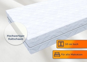 Biete hier Topper Kaltschaum 90cm x 200cm x10cm Ideal für Matratzenschutz. Die Kaltschaumauflage bewirkt eine bessere Druckentlastung - ist besser schlafen, beidseitig verwendbar. Außenbezug Polyester. abnehmbar und waschbar.