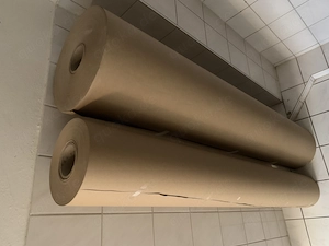 1 Packrolle ist komplett unbenutzt. Die 2 Packrolle ist fast bis zur Hälfte aufgebraucht. Es handelt sich um sehr stabiles Packpapier für Versand und Verpackung größerer Dinge. Aber auch zum Abdecken oder Bastelarbeiten. Aufgrund des Gewichts nur Selbstabholer (am besten mit 2 kräftige Personen und ...