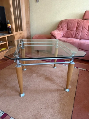 Verkaufe einen modernen Glastisch mit stabilem Metallgestell und Holzbeinen (siehe Bild). Maße: * ca. 75 x 75 cm Der Tisch ist in gutem gebrauchten Zustand mit leichten Gebrauchsspuren, aber voll funktionsfähig und stabil. Nur für Selbstabholer (91365, Weilersbach) kein Versand. Privatverkauf: Der ...