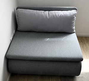 Wir verkaufen hier einen Taubengrauen Sessel der zur Schlafgelegenheit umgebaut werden kann. Sitzfläche als Sessel: 100cm * 0,75cm. Das dazu gehörige lange Kissen, hat die Farbe gau. Liegefläche als Bett: 100cm * 185cm. Wurde nur 7-9 mal als Bett benutzt und kommt aus Nichtraucherhaushalt. In dem ...
