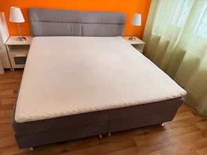 Ich verkaufe mein gut erhaltenes Boxspringbett aufgrund eines Umzugs. Liegefläche: 180 x 200 cmFarbe: GrauLiegehöhe: ca. 60 cmHöhe Kopfteil: ca. 110 cm Das Bett ist ca. 3,5 Jahre alt und befindet sich in einem sehr guten Zustand (nicht durchgelegen). Es bietet durch den Kaltschaum-Topper einen hohen ...