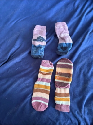 Hallo, ich biete hier zwei Paar unbenutzte Kinder Rutschsocken an. Sie sind perfekt, damit dein Kind sicher auf glatten Böden spielen kann. - Ein Paar in zarten Rosa- und Lilatönen mit einem blauen Sohlen-Design, das an eine Berglandschaft erinnert. - Das andere Paar begeistert mit bunten Streifen in ...