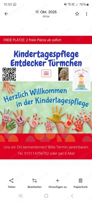 Liebe Eltern Wünschen sie sich einen ruhigen, entspannten und gemütlichen Ort mit einer beständigen und gut ausgebildeten Betreuungsperson für die Tagesbetreuung ihres Kindes ihrer Kinder ? Dann sind sie bei mir richtig... Ich bin Tagesmutter in 13591 Spandau Staaken, über das Bezirksamt Spandau (Abrechnung ...
