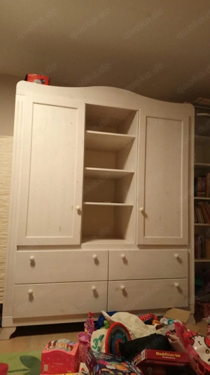 Verkaufe vier weiße Schränke Kommoden der Marke Wellemöbel (Model Ronja). Die Schränke sind in einem guten Zustand mit kleinen Gebrauchsspuren. Ein Kleiderschrank mit zwei Türen und vier Schubladen. Ein Hochschrank mit drei offenen Fächern und drei Schubladen. Eine große Kommode mit einem offenen ...