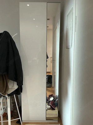 Schuhschrank mit Fächern, eine Spiegeltür halbseitig Tiefe der Schuhfächer: 37cm Maße: 230cm Höhe, 74,5cm Breite, 40cm Tiefe Abzuholen bis 29.4.