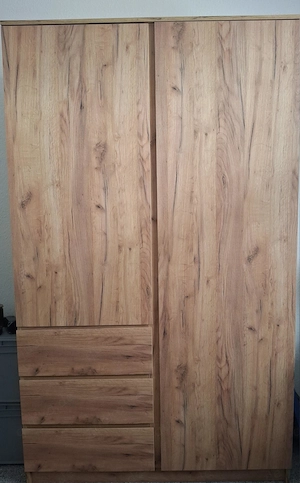 Moderner Kleiderschrank in Holzoptik sehr guter Zustand Ich verkaufe einen ca. 1,5 Jahre alten Kleiderschrank in heller Holzoptik. Der Schrank befindet sich in einem sehr guten Zustand und weist keine größeren Gebrauchsspuren auf. Er bietet viel Stauraum: 2 Türen 3 geräumigen Schubladen mehreren ...