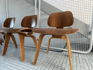 Preis: 229 VB pro Stuhl 1.145 VB für alle 6 (6 Stück zum Preis von 5) Beschreibung: Zum Verkauf stehen insgesamt 6 Schichtholz-Stühle im Mid-Century- Eames-Stil in schöner Walnussoptik. Die Stühle haben eine sehr schöne Form, wirken zeitlos und passen gut zu Esstisch, Besprechungsraum, Atelier, ...