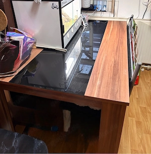Gebe meinen Tisch ab. Gebrauchsspuren und Kratzer, aber sehr stabil. Mit Tischdecke sieht man das ja nicht und er erfüllt locker noch seinen Zweck. Schwarze glasplatte. Braune holzmaserung. Macht mir Angebote ich tausche auch. Brauche von Ikea ein Kallax Regal. Kein Versand