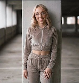Beiger jogger samt velour set zweiteiler tracksuit