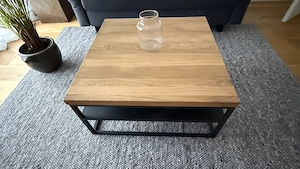 Couchtisch Eiche massiv natur geöit, Ablage aus Metall schwarz