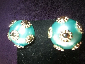 NEU Original VINTAGE 3D Blumen Blüten Flower- Power DESIGNER Perlen Ohrringe Ohrclips gold türkis