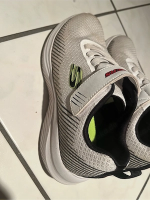 Die Schuhe sind brandneu, Größe 33, und ich habe sie für Hallensportarten in der Schule getragen.