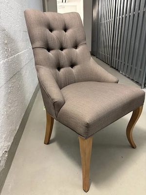 Polsterstuhl, Bezug Webstoff mokka, Rücken gesteppt, mit Griff im Rücken, Beine Buche massiv eichefarbig, BHT ca. 52*92*61 cm.