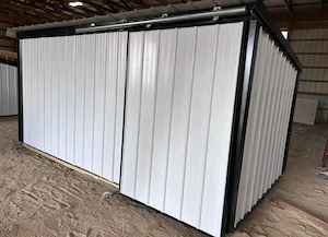 Tierunterstand 8x15 Fuß (ca. 2,4 x 4,5 m) mit 4 Fuß (ca. 1,2 m) breitem Tor und Schiebetür. 8x8 Fuß (ca. 2,4 x 2,4 m) große, behandelte Bodenfläche. Individuelle Anpassung möglich. Für weitere Informationen bitte per Nachricht oder telefonisch per SMS anfragen. Preis: 1.700 Versand möglich.