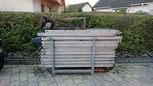 Dachdeckeraufzug universell einsetzbar , Länge 40m !!! gesamt, Aufzug deutscher Hersteller, Fa. Simplex Transportgestell aus Stahl Bedienteil Endabschalter Anfangsschiene Zwischenschienen Endstück mit Umlenkrolle Schlitten 2xPritsche Motor Knickstück