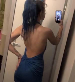 enges blaues kleid