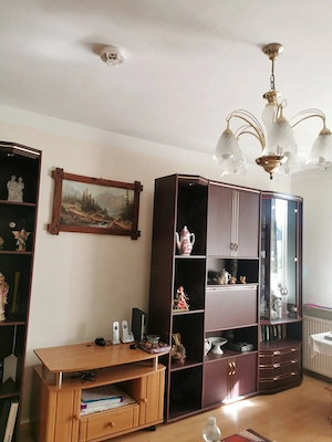 Wohnwand buchenfarbend ( vier getrennte Teile) 1. Schrankteil links mit Fernsehanlage. 90 x 60 x 210 cm 2. Schrankteil rechts mit Glasvitrine. 60 x 60 x 210 cm 3. und 4. 60 x 60 x 145 cm Teile 2-4 gehören zusammen, können aber einzeln gestellt werden. Verschiedene Wandablagen Teppich 340 x 245 cm ...