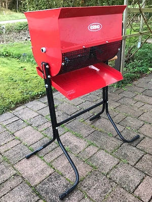 Dieser wenig gebrauchte Feinkompostierer der Firma Ering hat eine Arbeitsbreite von 460 mm, besteht aus lackiertem Stahlblech. Gewicht ca. 18 kg.
