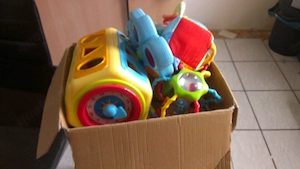Baby und Kinderspielzeug eine Kiste voll
