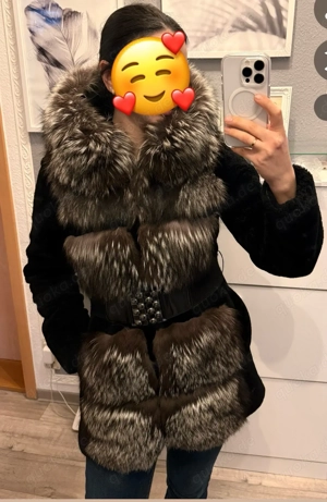 Sehr schöner Pelzmantel in sehr gutem Zustand. Material: Muton & echter Silberfuchs. Einziger kleiner Mangel: Die Verschlüsse halten nicht optimal. Hinweis: Die Verschlüsse sollten idealerweise ausgetauscht werden, daher Preis reduziert. Der Rabatt erfolgt ausschließlich aus diesem Grund - ansonsten ...