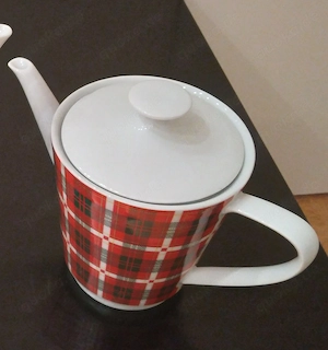 1 Teekanne mit Deckel, Weißporzellan rundum rot grün kariert, Durchmesser 12,5 cm, Höhe 14 cm (ohne Deckel), Marke auf der Unterseite: Winterling Kirchenlamitz BAVARIA Nr. 13. Vermutlich 70-er Jahre. Die Kanne ist unbenutzt, unbeschädigt, daher neuwertig. Aus tierfreiem Nichtraucherhaushalt. Bei Versand ...