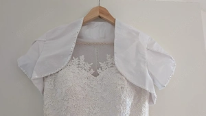 Verkaufe dieses schöne Kleid und Bolero in weiß. Es müsste eventuell einmal in die Reinigung um wieder frischen Duft reinzukommen. Das Kleid hat Größe 34 und der Bolero 36. Perfekt für Feier oder Hochzeit. 80 + Versand 6,19 Bitte nur normale Banküberweisung, da ich kein PayPal habe. Bei Geldeingang ...
