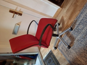 Bürostuhl, hohe Lehne, höhenverstellbar, 5 Rollen, tief 47 cm, breit 49 cm, hoch 1,03 m, 35 VB