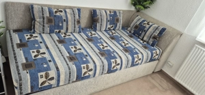 Verkaufe mein praktisches Schlafsofa mit maritimem Patchwork-Design in Blau, Grau und Weiß. Ausziehbare Schlafcouch 2 Topper 90 x 200 H ca 8 - 10 cm Farbkombination in Blau, Grau und Weiß Praktische 2-in-1 Lösung: Sofa und Bett Geräumige Liegefläche 90x200 80x200 (170x 200) H 47 Gesamt Länge ...