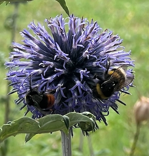 Winterharte Stauden, Kugeldistel blau, Herbstaster niedrig, Schwertlilie, Iris zart hellblau