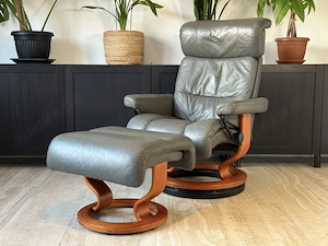 Original Stressless by Ekornes Sessel mit Hocker, Echtleder, grau