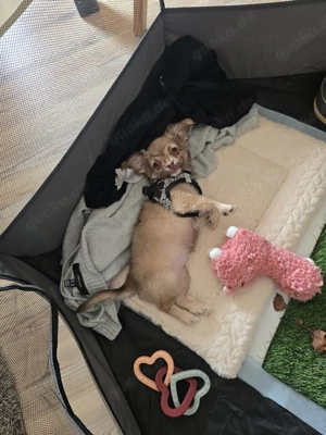 10 Wochen alte Chihuahua Dame sucht Kuschelplatz! Sie ist topfit, verspielt und kuscheln gehört zu einer ihrer Lieblingsbeschäftigungen. Gegenüber Fremden ist sie aufgeschlossen, jedoch erst einmal zurückhaltend. Nach einer kurzen Kennenlernphase wird sie schnell zutraulich. Kinder und Katzen kennt sie ...