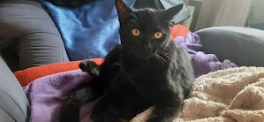 Sehr lieber und familiengeeigneter Kater sucht ein liebevolles Zuhause. Er ist rabenschwarz und wurde deswegen nicht gewollt ( seine Geschwister kamen alle kanghaarig und getigert heraus).Dafür hat er aber einen ganz wundervollen Charakter, spielt mit den Kindern auf dem Schulhof, besucht die Nachbarn ...