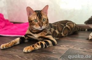 Unser toller Deckkater freut sich auf Mädels Unser bildhübscher, lieber und reinrassiger Deckkater mit wunderschönen Augen hat wieder Kuschel Termine frei. Er ist reinerbig braun rosetted, das bedeutet er hat noch nie marble kitten gebracht und sein Stammbaum spricht für sich Er ist kerngesund ...