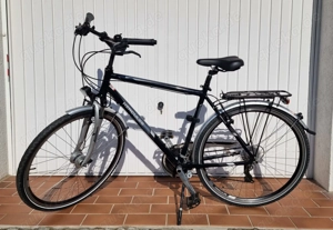 sehr gepflegter Zustand | Bereifung 28 Zoll | Kettenschaltung 21 Gang | integrierte Beleuchtung vorne hinten über Nabendynamo | Felgenbremse vorne hinten | Federgabel vorne | Rahmengröße 53 | zul. Gesamtgewicht 140 kg | Farbe schwarz silber | Schutzbleche | Gepäckträger | alles funktioniert