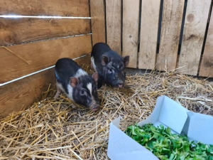 4 Ferkelchen suchen noch ein schönes zu Hause,ein Eber und 3 Sauen. Geeignet für die Stallhaltung, Gartenhaltung oder auch als Hausschwein. Sie bleiben klein, die Eltern können bei uns angeschaut werden. 100 pro Ferkel Wer alle 4 nimmt, bekommt sie für 300 . Nur Abholung, aktuell passen sie noch in ...