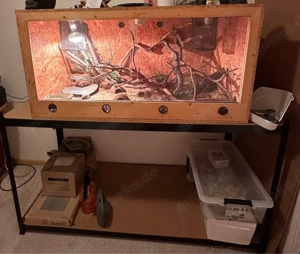 Guten Tag, hiermit biete ich mein gut erhaltenes Holzterrarium mit den Maßen 120x60x60 cm an . Mit dabei sind zwei Wärmelampen mit Schutzkorb und etwas Dekoration .Gerne kann der Unterschrank auch mitgenommen werden. Bei weiteren Fragen schreiben Sie mir gerne einfach eine Nachricht. liebe Grüße Mandy Abholung ...