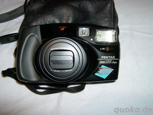 Die Pentax Zoom 105 Super ist eine vollautomatische 35mm-Kompaktkamera m einem Pentax 38-105mm f 4-7.8 Power Zoom Objektiv, aktiver Infrarot-Autofokus, eingebautem Blitz, Belichtungsautomatik und verschiedenen Modi wie Makro, Mehrfachbelichtung, Selbstauslöser und Gegenlichtkorrektur, angetrieben von ...